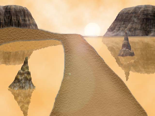 Description: Created: July 3, 1999. This was somewhat inspired by a level in the N64 racing game Extreme-G, although the game actually looks better... Photoshop 4 and Bryce for the rocks.