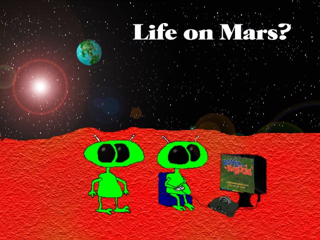 Description: Created: October 5, 1998. I did this around the time scientists were claiming to have found a meteorite from Mars that had possible proof of life. I figured that if aliens were on Mars, they would probably be playing Nintendo. I think I did the original of this in MS Paint, then updated it in Photodeluxe and Photoshop.