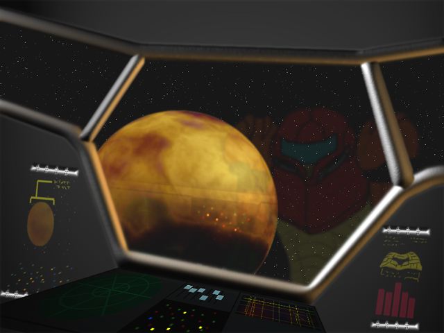 Description: Created: February 17, 2001. This was made back when it was announced that the GameCube Metroid game would be a first-person adventure. Many thought that would ruin the game, but Metroid Prime turned out to be one of the greatest games this generation. This is Samus in her ship looking out at Zebes.